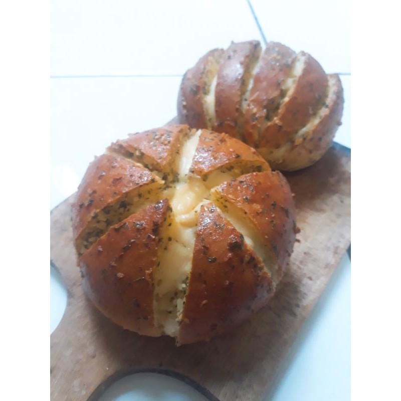 Dibuat dari milk bun yang lembut lalu diisi dengan cream cheese dan disiram adonan garlic butter yang wangi dan enak