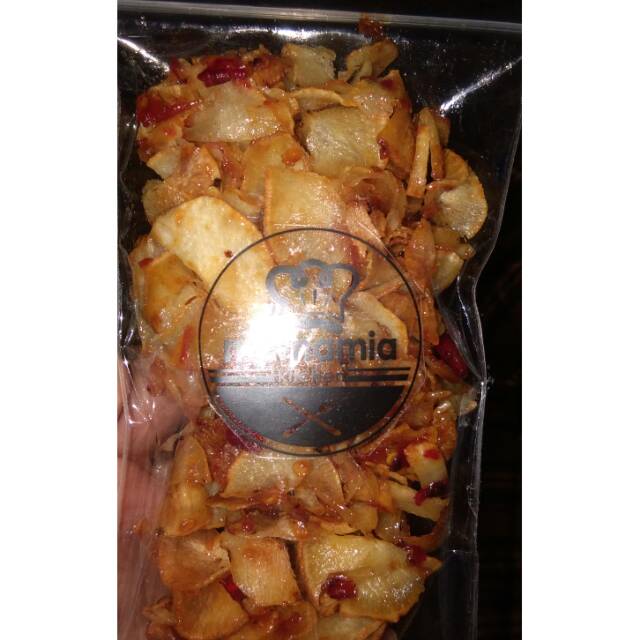 Criping singkong rasa pedas manis. Berat 75 gr