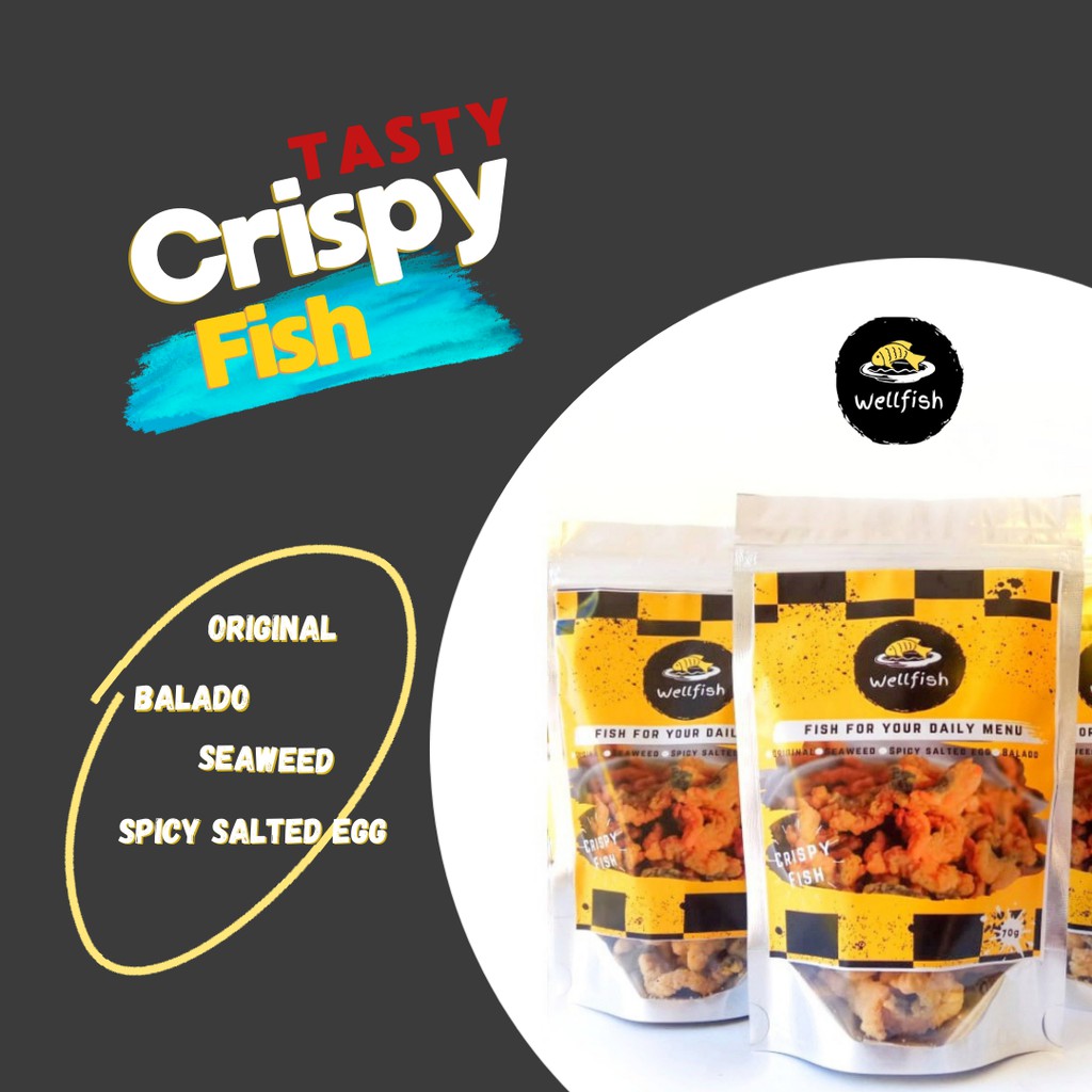 Crispy Fish adalah produk olahan bergizi berbahan dasar daging ikan segar yang dibalut tepung bebas gluten dan berbagai macam rempah kualitas terbaik. Crispy fish merupakan produk hasil karya anak muda Indonesia yang didedikasikan untuk keluarga pintar Indonesia. Produk diolah menggunakan prosedur pembuatan dengan standar higienis sehingga menghasilkan cemilan dengan daging ikan yang lezat, crispy, dan bergizi. Produk oldahan ikan mengandung akan Omega 3 dan sumber Vitamin D yang baik serta bermanfaat untuk perkembangan otak anak, meningkatkan kecerdasan, membantu pertumbuhan tulang dan gigi anak.