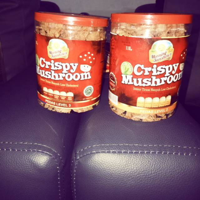Kripik jamur, tersedia level pedas dari 1 - 3 dan rasa ori (tdk pedas )