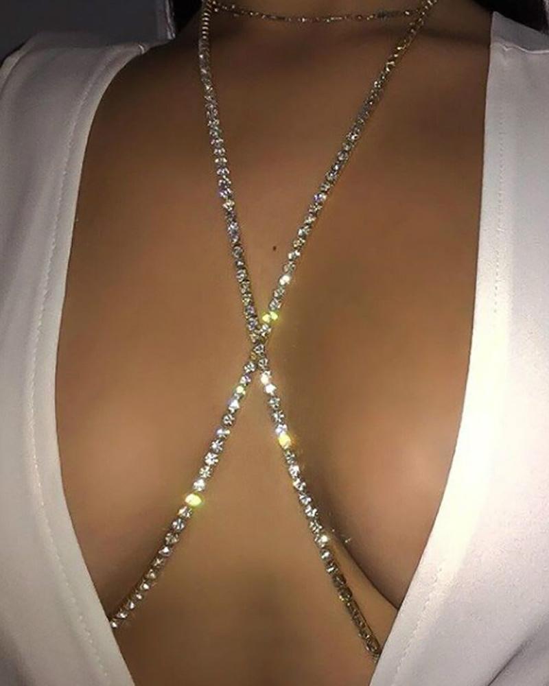 Crisscross Rhinestone Body Chain, Silver