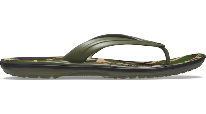 All Flip, No FlopSporty and lightweight with the signature athletic stripe, the Crocband™ Flip is a colorful and incredibly comfortable warm-weather choice. Constructed of cushy, easy-to-clean Croslite™ foam material, it’s ready for the beach, the garden or anywhere else you choose to get your flip on! This season’s version has a variety of graphics, featuring bold Crocs logos and camo and tropical floral prints. Crocband™ Printed Flip Details: Midsole racing stripe for a sporty look Easy to clean and quick to dry Soft upper straps and toe posts Iconic Crocs Comfort™: Lightweight. Flexible. 360-degree comfort.