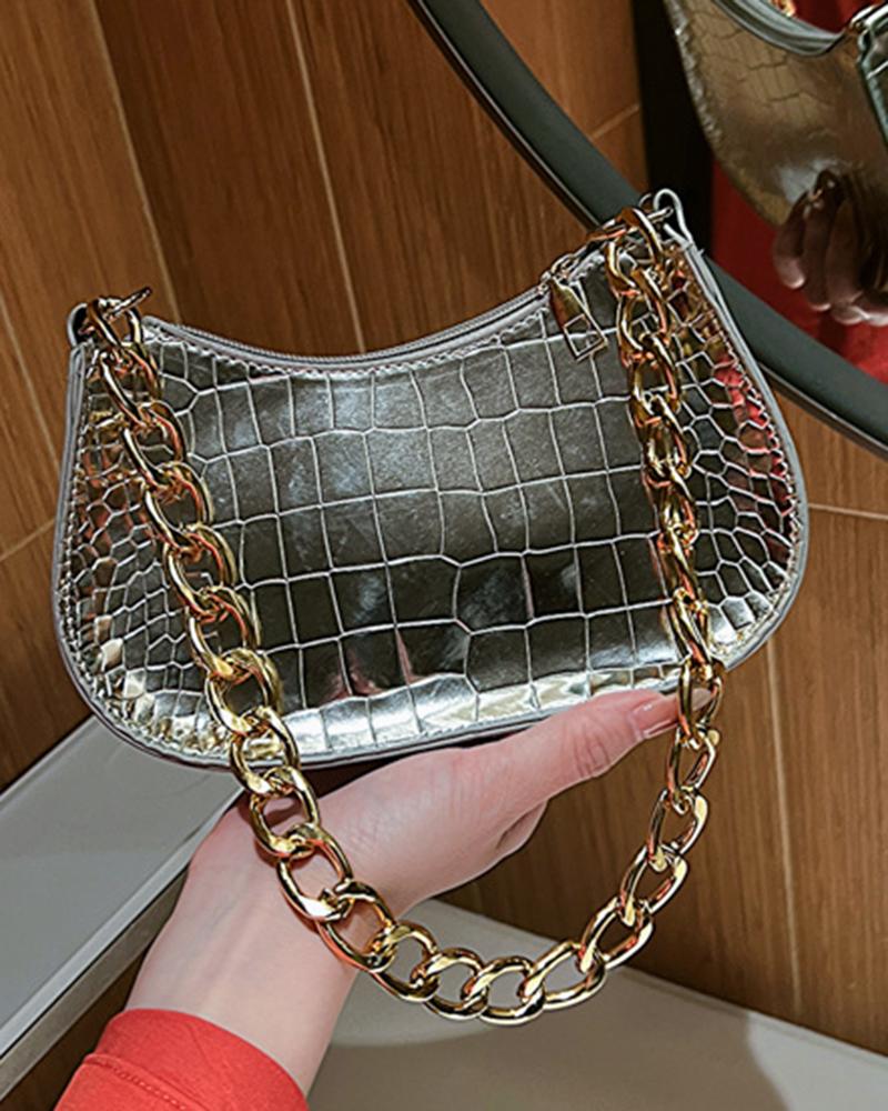 Crocodile Chain Strap Zipper Design Shoulder Bag, Silver