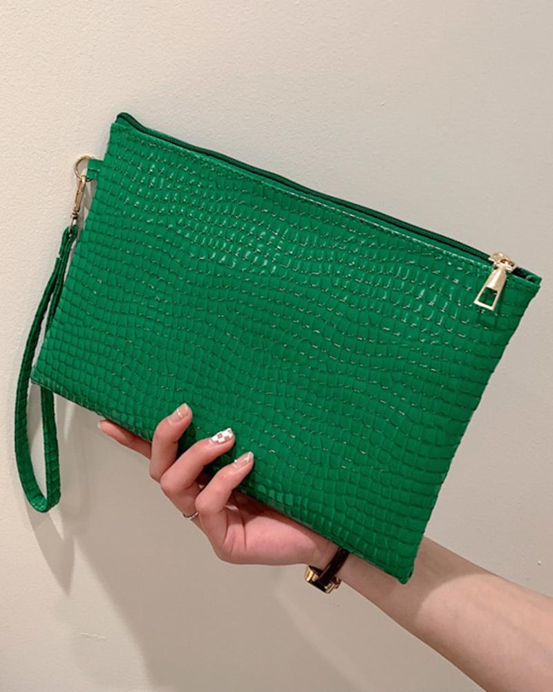 Crocodile Embossed Envelop Clutch Bag, Green