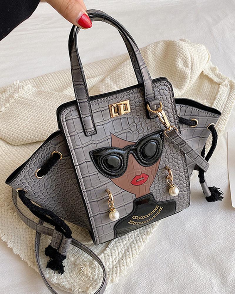 Crocodile Figure Pattern Bucket Handbag, Gray