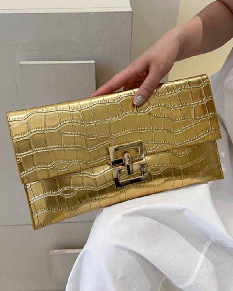 Crocodile Press Lock Enveloppe Rabat Pochette, Gold