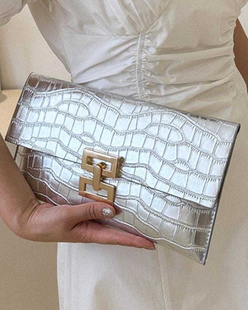 Crocodile Press Lock Enveloppe Rabat Pochette, Silver