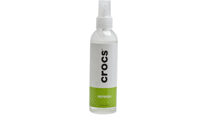 Give your favorite Crocs a refresh! Crocs™ Refresh spray is specially designed to keep your favorite fuzz-lined Crocs and other footwear feeling and smelling their freshest. An aqueous-based odor-eliminating solution, this spray penetrates deep surfaces to tackle even the toughest odor. It’s also pH balanced, PFOA-free and formulated with 95% naturally derived ingredients. Crocs™ Refresh Details: Aqueous-based spray for fighting odors Specially designed for Crocs with 95% naturally derived ingredients pH balanced and PFOA free Fine mist sprayer in a convenient on-the-go size Safe to use on footwear, fuzz-lined footbeds, backpacks, gym bags, handbags and more