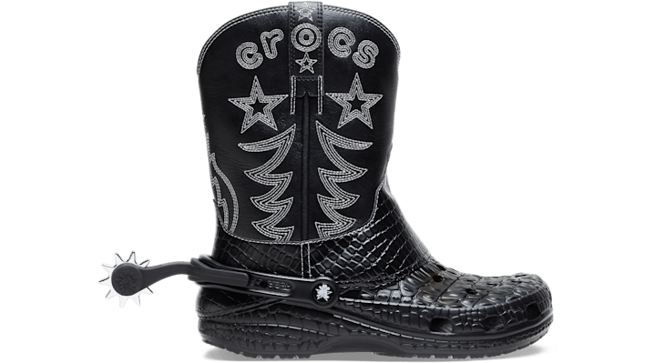 These Cowboys Are Calling Our Crocs Classic Cowboy Boot is available for a very limited time. Inspired by our fans’ creativity and perfect for any place you go—whether faraway lands or nearby neighborhoods. The Cowboy Boot features a signature Crocskin texture, metallic disco desert embroidery details, and a spinning spur on the back so you can really kick up some dirt. Giddy up! Crocs Classic Cowboy Boot Details: Crocskin texture Metallic embroidery details Removable spur on the backstrap Comfy Croslite™ footbeds Vent holes for breathability Customizable with Jibbitz™ charms