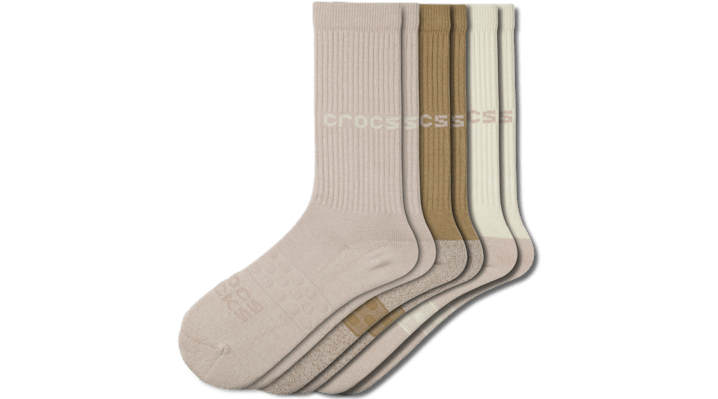 Be comfortable anywhere and everywhere in your own shoes—and now in your own Crocs Socks. Each pair has been engineered with high-quality elastic to help socks stay up, twisted and compacted yarn for improved durability, and a mesh arch band for fit and comfort. Plus, they’re a stylish addition to your everyday look whether you’re lounging or leveling up your favorite outfits. Go wild with this 3-pack by pairing them up or mixing and matching your socks style. Crocs Socks Adult Crew Solid 3-Pack Details: 65.3% cotton, 19.3% nylon, 13.2% polyester, 2.2% elastane Machine Wash in 40 C / 104 F Avoid bleaching or ironing, tumble dry low Unique patterns and colors inspired by Crocs Classic shoes and Jibbitz™ charms Available in a variety of low, crew and quarter heights Includes three matching pairs