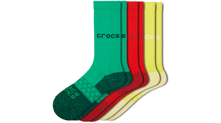 Be comfortable anywhere and everywhere in your own shoes—and now in your own Crocs Socks. Each pair has been engineered with high-quality elastic to help socks stay up, twisted and compacted yarn for improved durability, and a mesh arch band for fit and comfort. Plus, they’re a stylish addition to your everyday look whether you’re lounging or leveling up your favorite outfits. Go wild with this 3-pack by pairing them up or mixing and matching your socks style. Crocs Socks Adult Crew Solid 3-Pack Details: 65.3% cotton, 19.3% nylon, 13.2% polyester, 2.2% elastane Machine Wash in 40 C / 104 F Avoid bleaching or ironing, tumble dry low Unique patterns and colors inspired by Crocs Classic shoes and Jibbitz™ charms Available in a variety of low, crew and quarter heights Includes three matching pairs