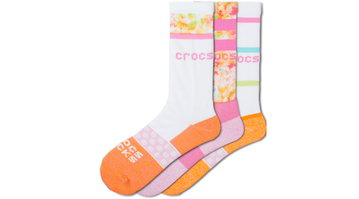 Be comfortable anywhere and everywhere in your own shoes—and now in your own Crocs Socks. Each pair has been engineered with high-quality elastic to help socks stay up, twisted and compacted yarn for improved durability, and a mesh arch band for fit and comfort. Plus, they’re a stylish addition to your everyday look whether you’re lounging or leveling up your favorite outfits. Go wild with this 3-pack by pairing them up or mixing and matching your socks style. Crocs Socks Adult Seasonal Three of A Kind Pack Details: 65.3% cotton, 19.3% nylon, 13.2% polyester, 2.2% elastane Machine Wash in 40 C / 104 F Avoid bleaching or ironing, tumble dry low Unique patterns and colors inspired by Crocs Classic shoes and Jibbitz™ charms Available in a variety of low, crew and quarter heights Includes three individual socks