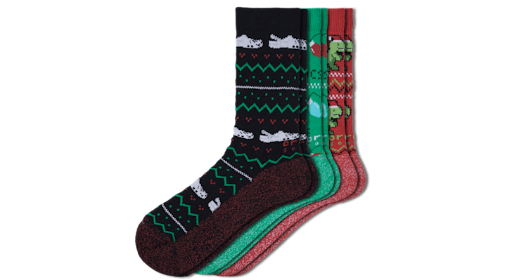 Be comfortable anywhere and everywhere in your own shoes—and now in your own Crocs Socks. Each pair has been engineered with high-quality elastic to help socks stay up, twisted and compacted yarn for improved durability, and a mesh arch band for fit and comfort. Plus, they’re a stylish addition to your everyday look whether you’re lounging or leveling up your favorite outfits. Go wild with this 3-pack by pairing them up or mixing and matching your socks style. Crocs Socks Holiday Crew 3-Pack Details: 65.3% cotton, 19.3% nylon, 13.2% polyester, 2.2% elastane Machine Wash in 40 C / 104 F Avoid bleaching or ironing, tumble dry low Unique patterns and colors inspired by Crocs Classic shoes and Jibbitz™ charms Available in a variety of low, crew and quarter heights Includes three matching pairs
