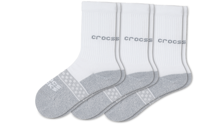 Be comfortable anywhere and everywhere in your own shoes—and now in your own Crocs Socks. Each pair has been engineered with high-quality elastic to help socks stay up, twisted and compacted yarn for improved durability, and a mesh arch band for fit and comfort. Plus, they’re a stylish addition to your everyday look whether you’re lounging or leveling up your favorite outfits. Go wild with this 3-pack by pairing them up or mixing and matching your socks style. Crocs Socks Kid Crew Solid 3-Packs Details: 65.3% cotton, 19.3% nylon, 13.2% polyester, 2.2% elastane Machine Wash in 40 C / 104 F Avoid bleaching or ironing, tumble dry low Unique patterns and colors inspired by Crocs Classic shoes and Jibbitz™ charms Available in a variety of low, crew and quarter heights Includes three matching pairs