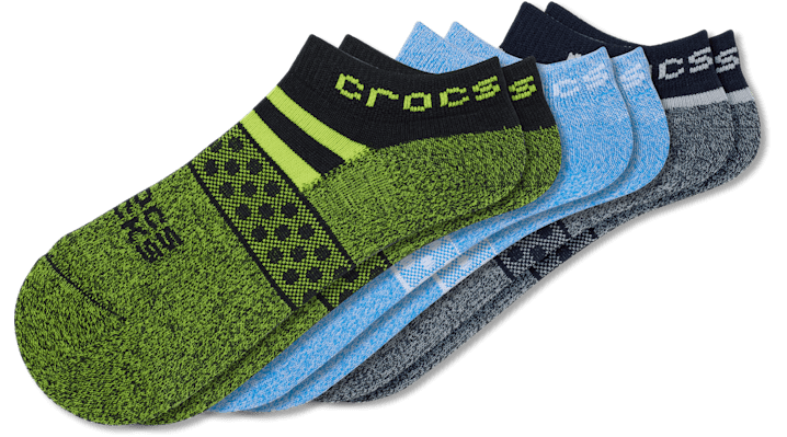 Be comfortable anywhere and everywhere in your own shoes—and now in your own Crocs Socks. Each pair has been engineered with high-quality elastic to help socks stay up, twisted and compacted yarn for improved durability, and a mesh arch band for fit and comfort. Plus, they’re a stylish addition to your everyday look whether you’re lounging or leveling up your favorite outfits. Go wild with this 3-pack by pairing them up or mixing and matching your socks style. Crocs Socks Kid Low Boy Pool Party 3 Pack Details: 65.3% cotton, 19.3% nylon, 13.2% polyester, 2.2% elastane Machine Wash in 40 C / 104 F Avoid bleaching or ironing, tumble dry low Unique patterns and colors inspired by Crocs Classic shoes and Jibbitz™ charms Available in a variety of low, crew and quarter heights Includes three matching pairs