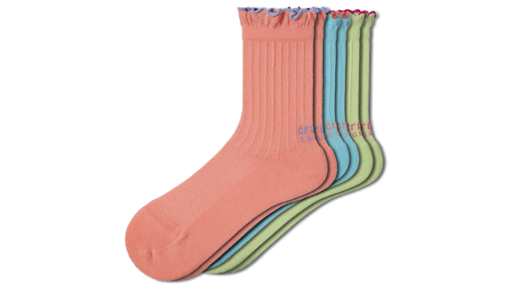 Be comfortable anywhere and everywhere in your own shoes—and now in your own Crocs Socks. Each pair has been engineered with high-quality elastic to help socks stay up, twisted and compacted yarn for improved durability, and a mesh arch band for fit and comfort. Plus, they’re a stylish addition to your everyday look whether you’re lounging or leveling up your favorite outfits. Go wild with this 3-pack by pairing them up or mixing and matching your socks style. CrocsSocks Ruffle Ankle 3-Pack Details: • 70% polyester, 15% nylon, 11% cotton, 4% elastane • Machine Wash in 40 C / 104 F • Avoid bleaching or ironing, tumble dry low • Unique patterns and colors inspired by Crocs Classic shoes and Jibbitz™ charms • Available in a variety of low, crew and quarter heights • Includes three matching pairs