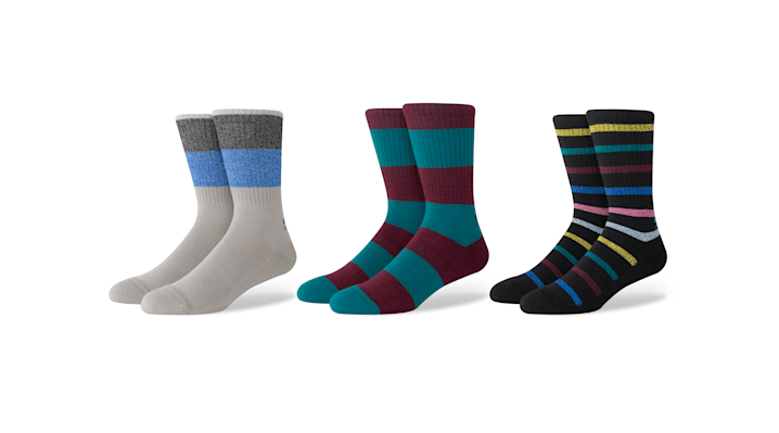 Be comfortable anywhere and everywhere in your own shoes—and now in your own Crocs Socks. Each pair has been engineered with high-quality elastic to help socks stay up, twisted and compacted yarn for improved durability, and a mesh arch band for fit and comfort. Plus, they’re a stylish addition to your everyday look whether you’re lounging or leveling up your favorite outfits. Go wild with this 3-pack by pairing them up or mixing and matching your socks style. CrocsSocks Threads Crew 3-Pack Details: 65.3% cotton, 19.3% nylon, 13.2% polyester, 2.2% elastane Machine Wash in 40 C / 104 F Avoid bleaching or ironing, tumble dry low Unique patterns and colors inspired by Crocs Classic shoes and Jibbitz™ charms Available in a variety of low, crew and quarter heights Includes three matching pairs