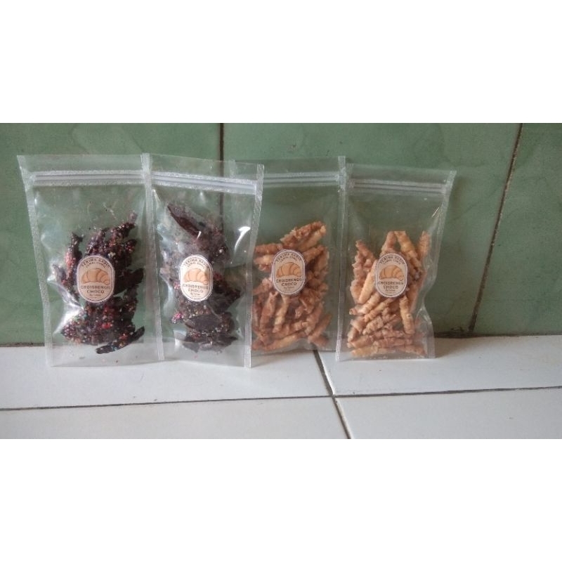 makanan ringan terbaru dengan rasa yang unik dibuat dengan bahan baku kulit pangsit dipadu dengan rasa coklat dan manis dengan tesktur yang renyah. Terinovasi dari roti croissant yang renyah dan lembut di dalam, Croisrengg choco ini dibuat renyah luar dan dalam dengan rasa manis.