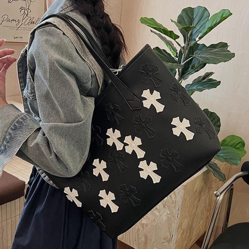 Cross Premium Sense Сумка на плечо из коровьей кожи первого слоя Звезда Патентная кожа Cross Кожаная Простая Вместительная сумка-тоут 38*11*26 чёрный