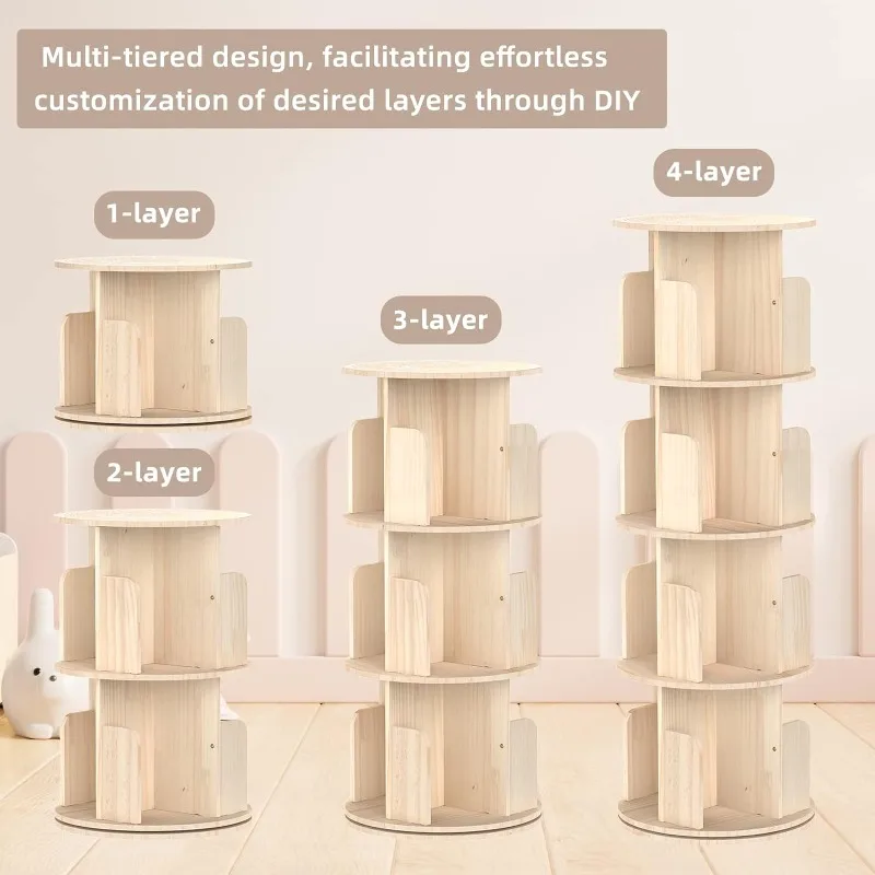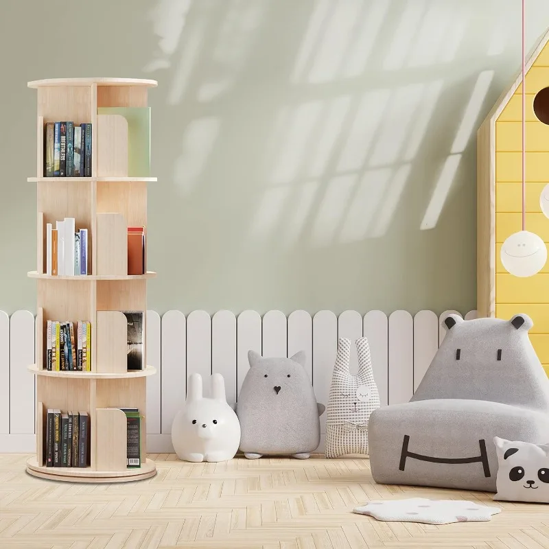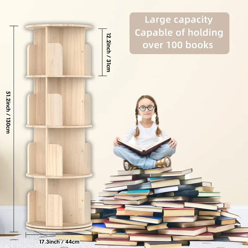 Cuguords вращающаяся книжная полка башня, дисплей 360 Вращающаяся книжная полка, 4-уровневый вращающийся книжный шкаф для детей и взрослых