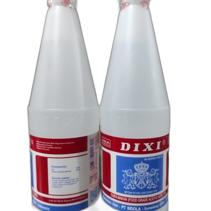 Cuka Makan DIXI merupakan produk cuka yang memenuhi standar kualitas makanan, sehingga aman untuk digunakan untuk berbagai makanan maupun masakan. Dihasilkan dari pengolahan modern yang higienis, menghasilkan kualitas terbaik dibandingkan dengan cuka makan yang lain tanpa merubah penampilan dan warna dari makanan.