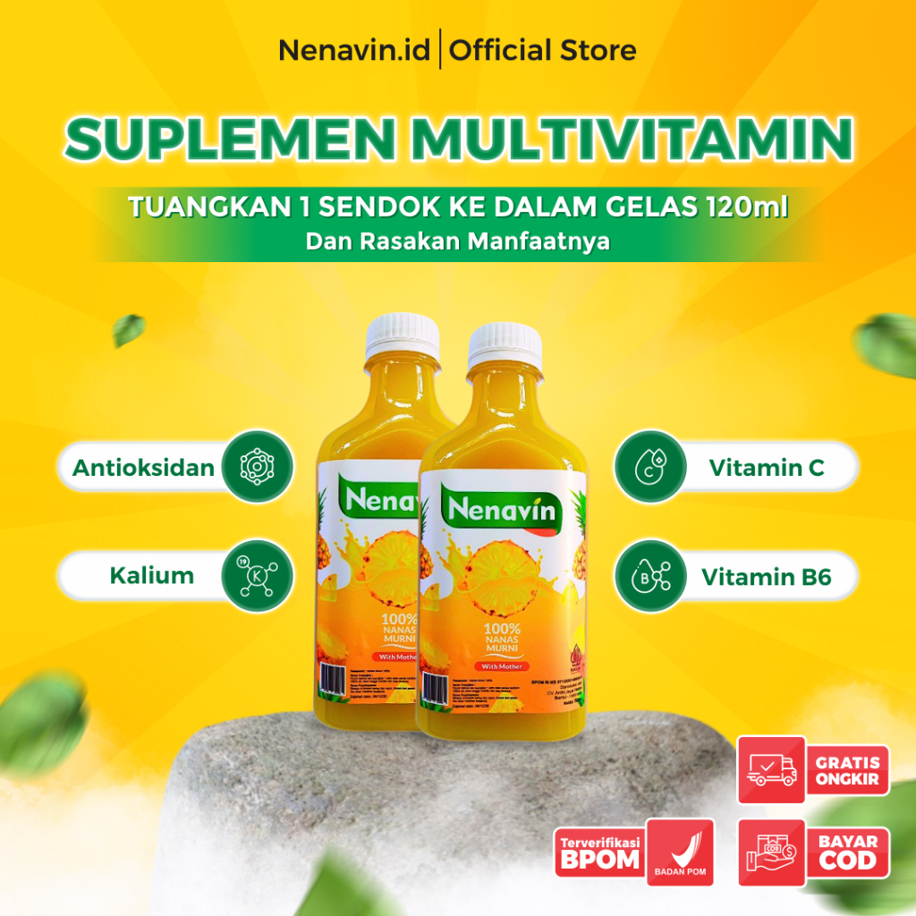 Nenavin adalah jenis minuman yang dihasilklan dari proses fermentasi buah nanas asli selama 3 bulan. Mengandung 100% buah nanas asli dan air mineral. Nanas sebagai bahan utama Nenavin kaya akan kandungan vitamin dan mineral yang diperlukan bagi tubuh.
