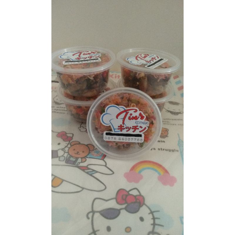 Cumi Asin Goreng Di beri topping sambal Matah yang pedas, harum, segar. menggugah selera makan