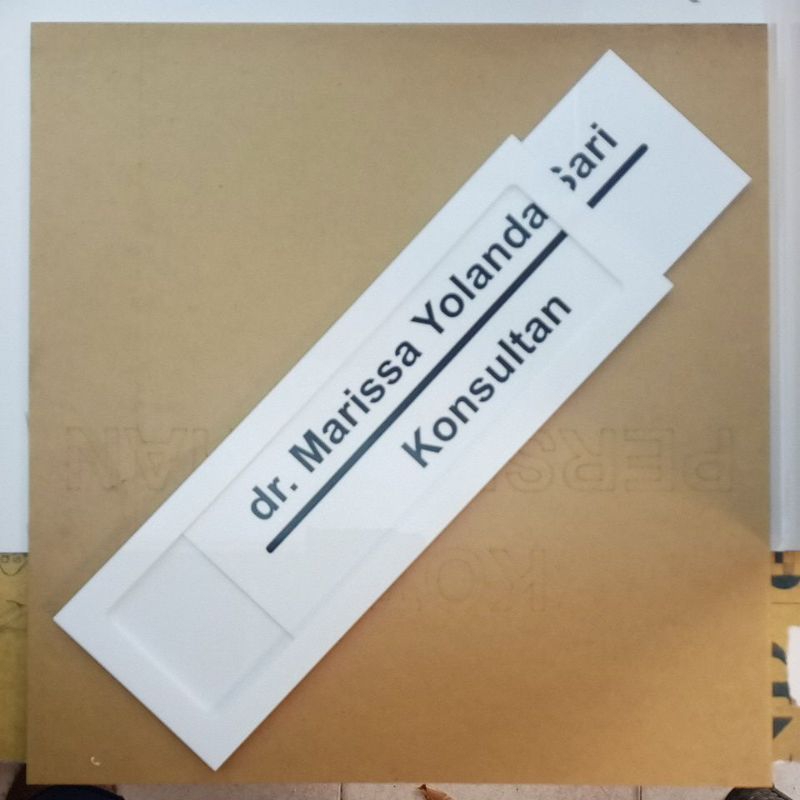 Custom Ralling / Geser Papan Nama Sign In Label Akrilik