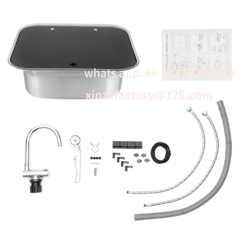 Customizable RV Sink Console Single Bowl 4In Stainless Steel Kitchen Hand Wash Basin Rotatable Faucet EVA Silent Pad for Caravan