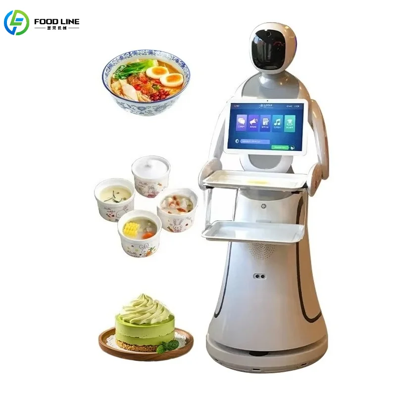 Customized Restaurant Food Delivery Robot High-Load Arm Ultrasonic Sensor Touch Screen LED Expression Device