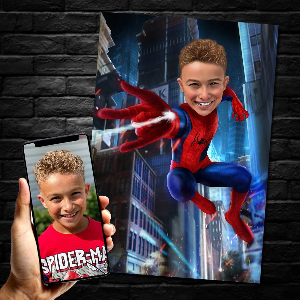 Personalized Spiderman Portrait Canvas Printing Custom Superhero Marvel Avengers Custom Poster Wall Art Room Decor Birthday Gift