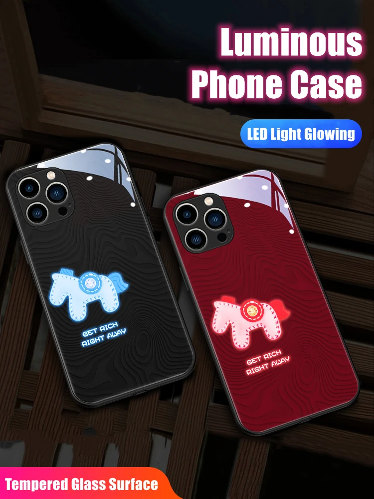 Cute Pony LED Light Glowing Luminous Phone Case Friend Birthday Gift for Samsung S24 S22 S23 Note 10 20 A13 A14 A73 Plus Ultra