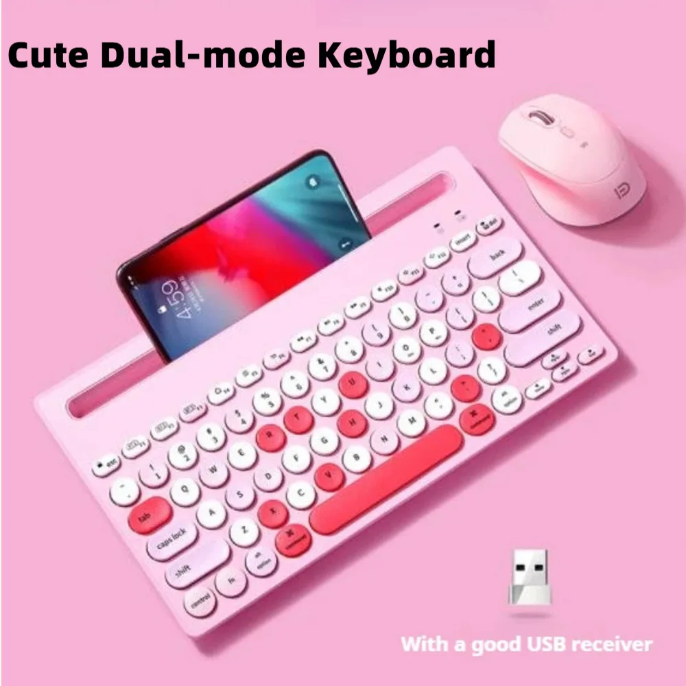 Cute Wireless Bluetooth Dual-mode Keyboard Compatible With Multiple Devices Low-noise Design Portable Keyboard For Girl Office