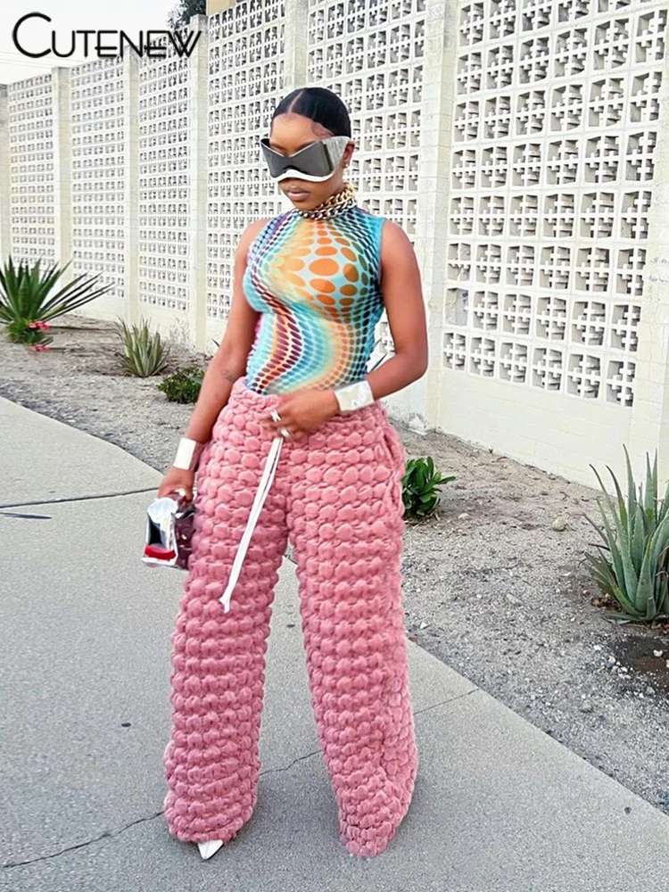 Cutenew Женские однотонные пэчворк пушистые брюки женские повседневные Прямые эстетические брюки женские брюки Модная уличная одежда Новинка