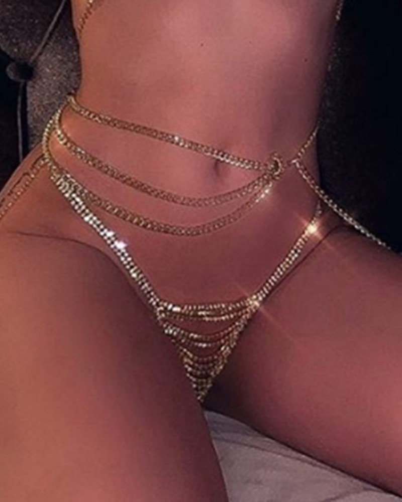 Cutout Layered Rhinestone Decor Body Chain, Gold