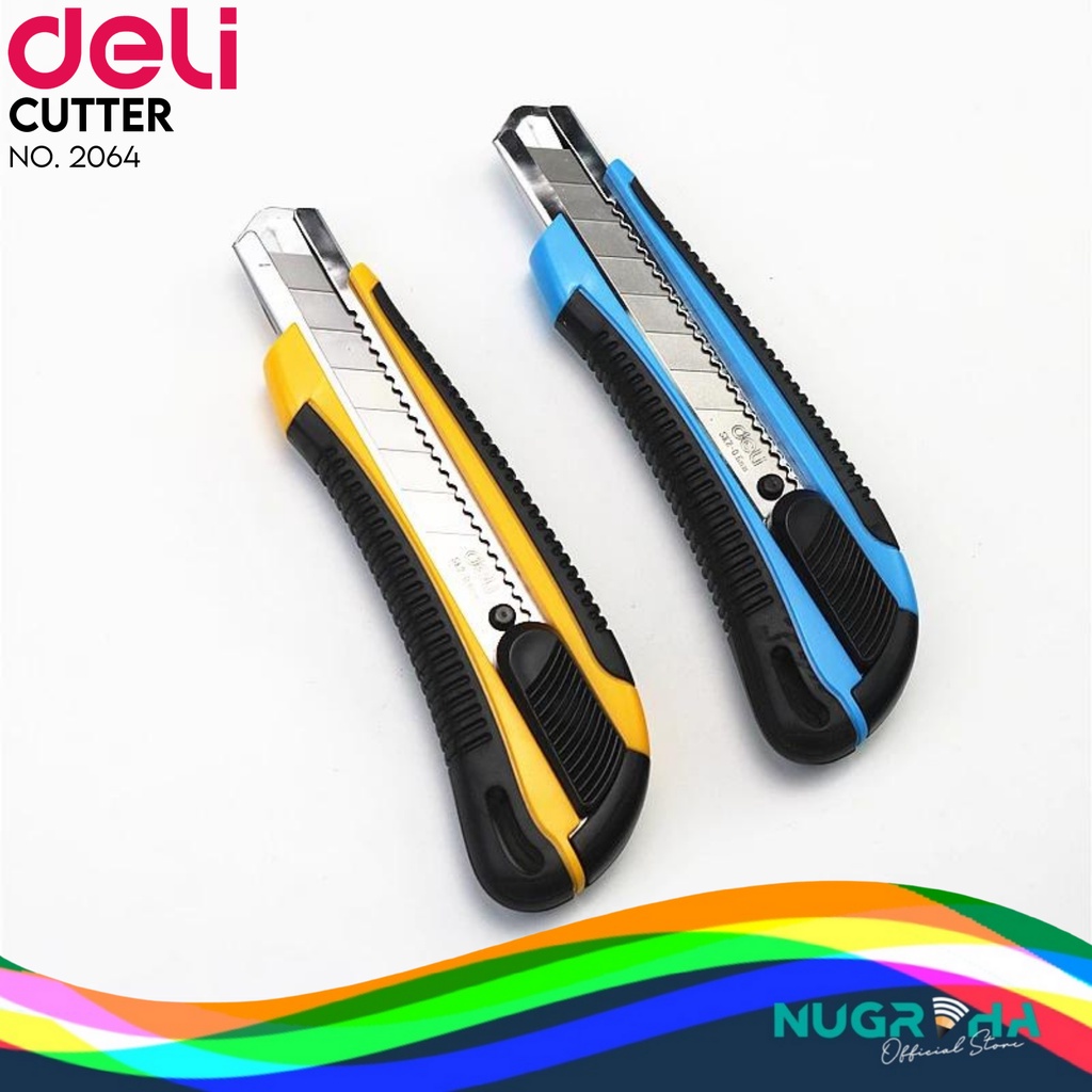 PISAU CUTTER BESAR DELI 2064 adalah cutter dengan mata pisau baja SK5 keras untuk memudahkan pemotongan dan memiliki penutup snap-off di belakang untuk mematahkan blade yang aus.