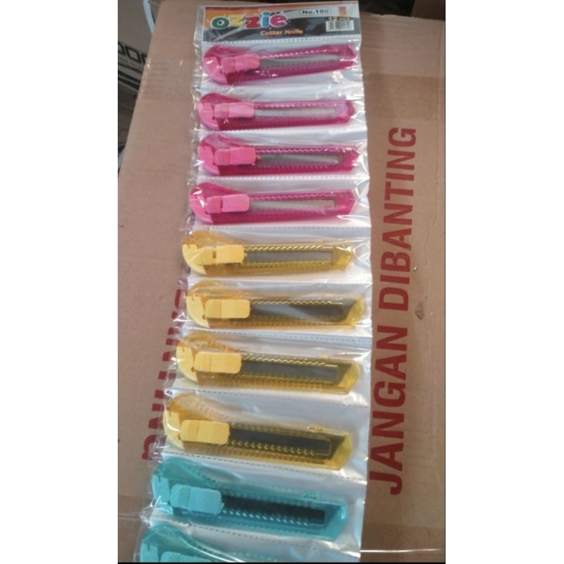 cutter renteng besar merek ozie. pisau sangat tajam body plastik warna dan bening
