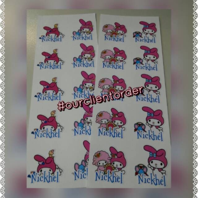 Sticker cutting ini waterproof (tahan air), awet/tidak mudah sobek dan tahan lama. Sangat cocok utk di tempel tupperware, buku, alat tulis dan mainan anak-anak, handphone, laptop, dll. Nama di sticker bisa disesuaikan dengan nama panggilan anak atau yang lain.