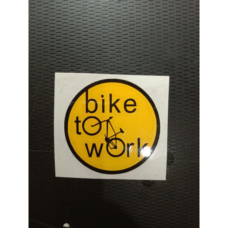 Cutting stiker btw bike to work ukuran 4,5cm dengan tulisan hitam dan beground kuning.