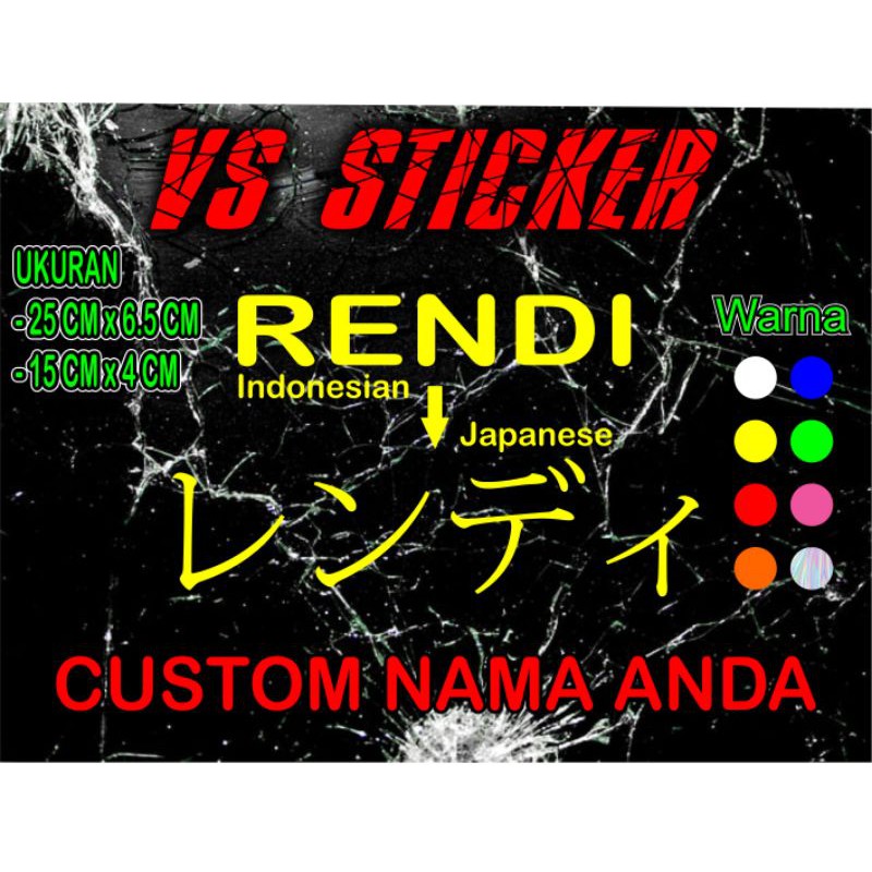 >>>SELAMAT DATANG DI VS STICKER (Venice) Kualitas Bahan Tahan Sampai Bertahun-tahun dan Tidak Mudah Pudar > Tipe Bahan Scotlite > silahkan masukkan NAMA sesuai keinginan anda > Stok Kami Unlimited Karena Kami Produksi Sendiri Cutting Sticker-nya ( Baru akan diproses Cutting Bila ada pesanan ) >>>TERIMA KASIH SELAMAT BERBELANJA