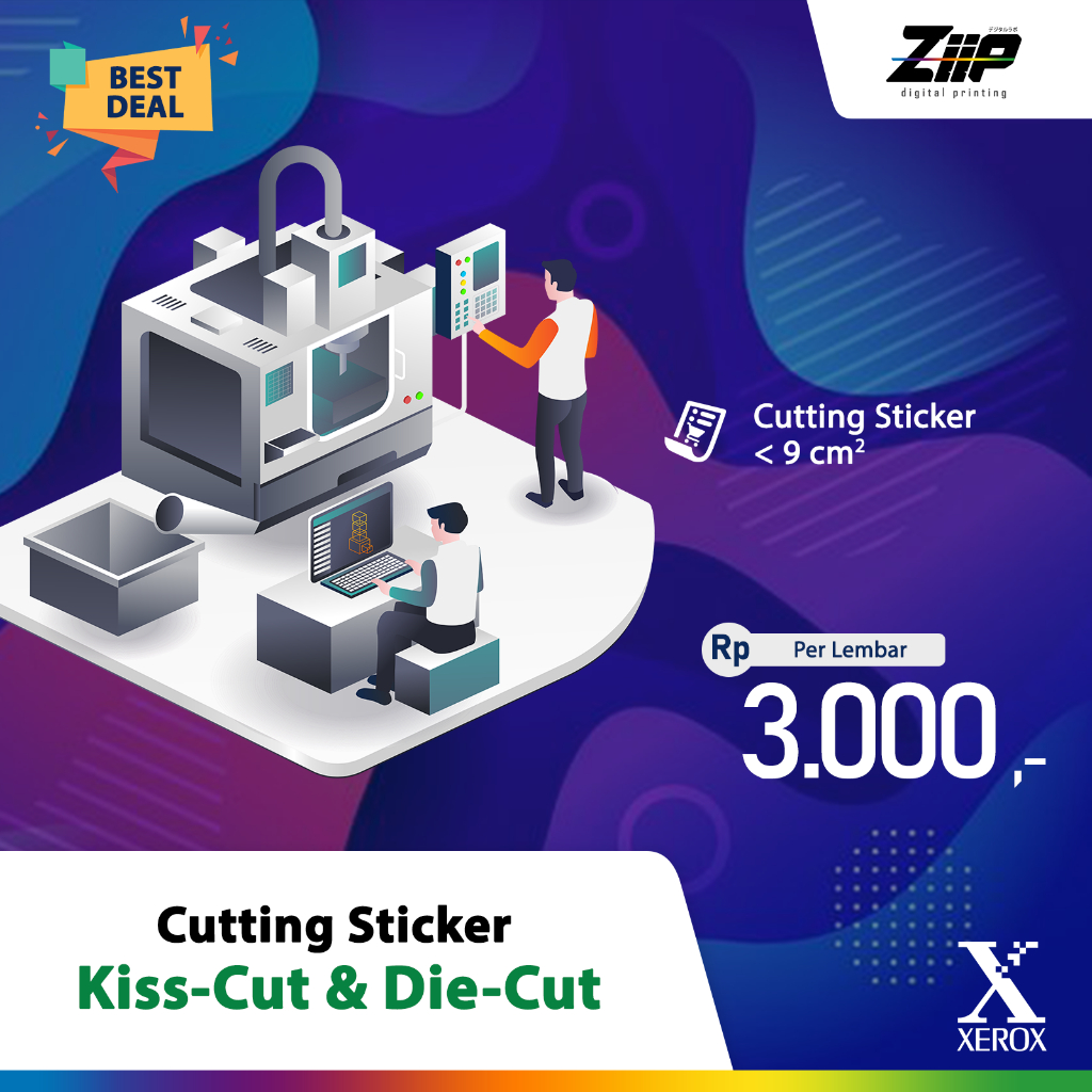 Cutting stiker kecil luas dibawah 9 cm2 Harga tertera perlembar A3+ terdapat 3 opsi ukuran ( photo slide ke-2) 1-3 cm2 >3-6 cm2 >6-