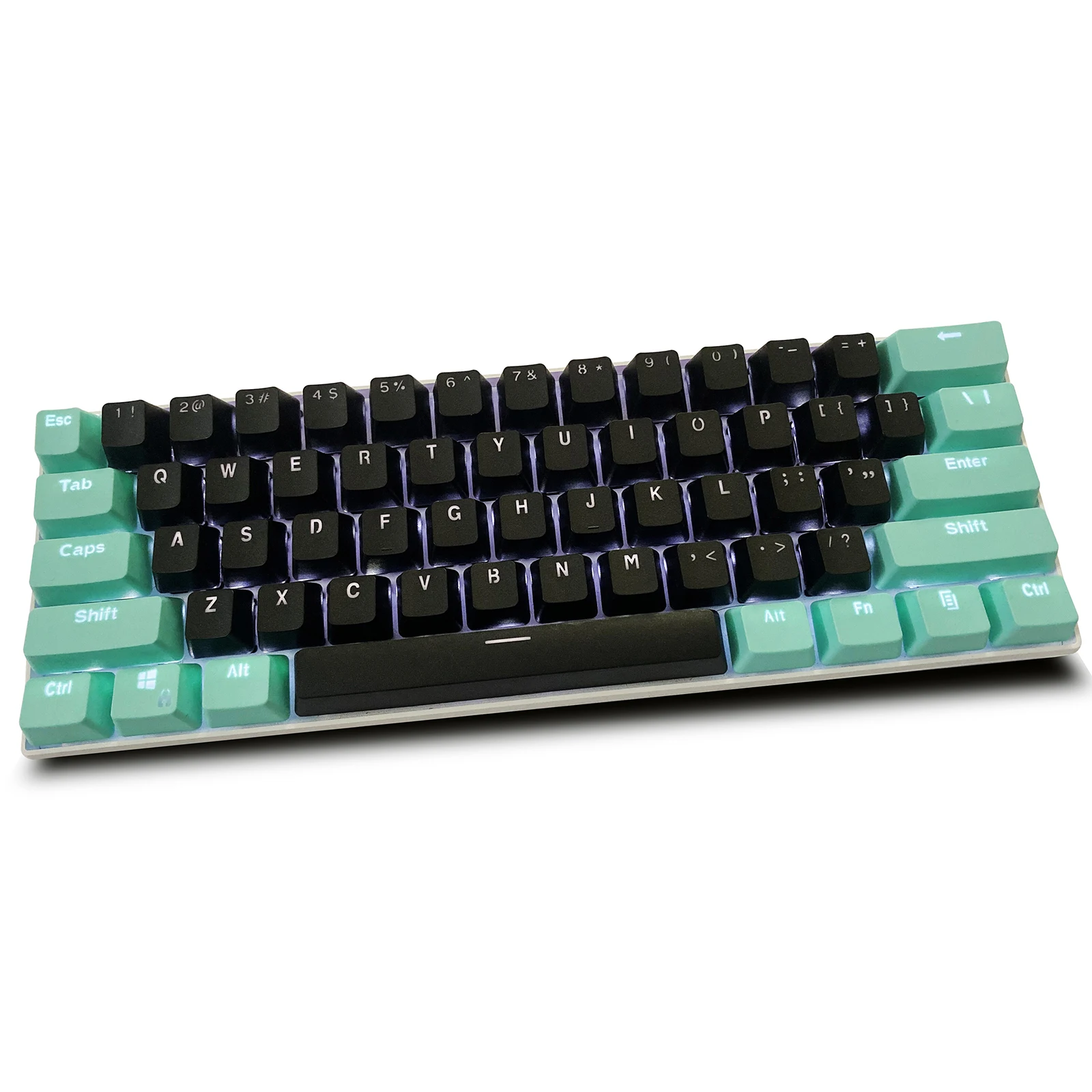 Cyan Black RK 61 Key PBT Backlight Keycaps OEM Profile for Wooting Double Shot Mechanical Keyboard