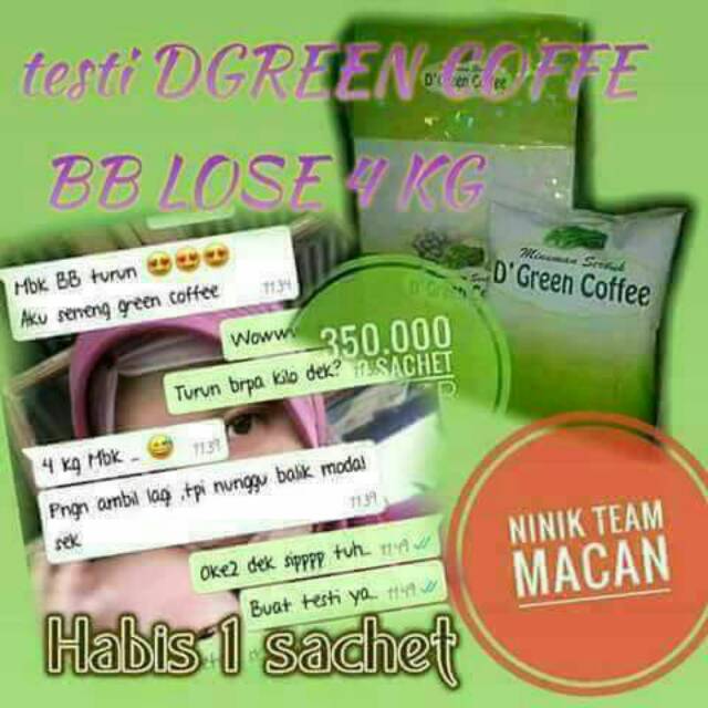 1 gelas 100cc air dicampur 10 gram D'Green coffee.