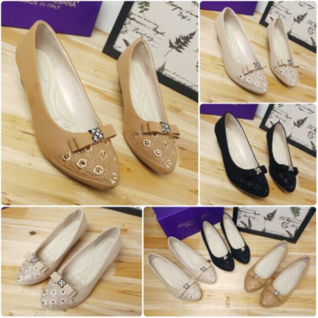 Flat Wedges semi suede leather bordir sulam motif + permata