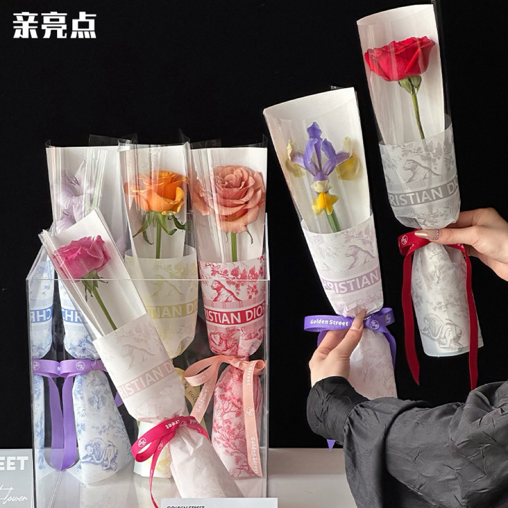 D*OR SINGLE ROSE CELLOPHANE WRAP, PLASTIK BUNGA MOTIF KLASIK DIOR