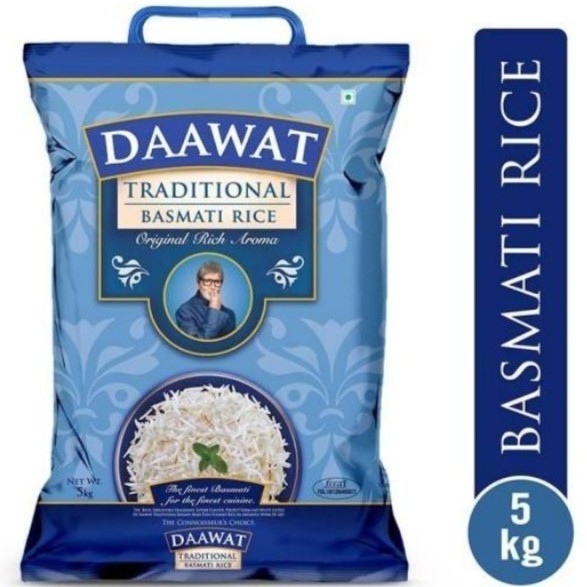 Pilihan penikmatnya, Nasi Basmati Tradisional Daawat, dengan aromanya yang kaya, rasa yang luar biasa, bentuk yang sempurna dan kilau putih menjadikan nasi kukus menjadi karya seni yang lezat dan aromatik. Setiap butir diolah dengan sempurna, menghidupkan kembali kemegahan masakan warisan kerajaan.