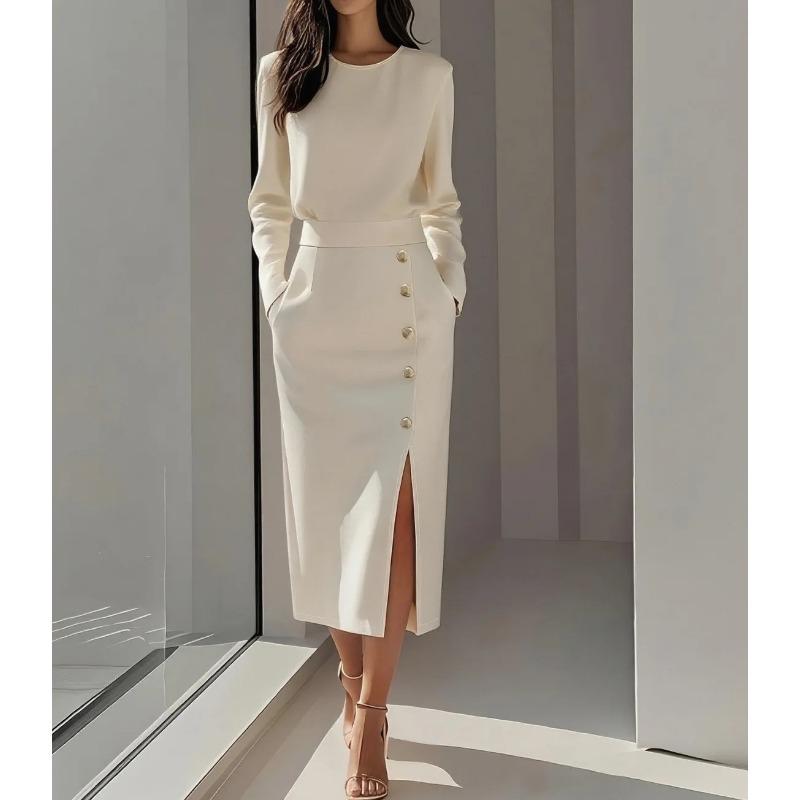 DAFIFY Женская мода Весна Осень Однотонный принт Длинный рукав Круглый вырез Высокая талия Повседневные платья XL