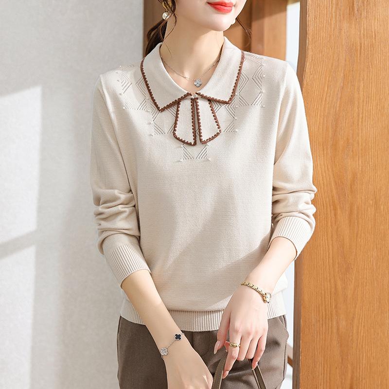 DAFIFY Женская мода повседневная осень-зима однотонный принт длинный рукав поло воротник свитера Size: One Size абрикосовый