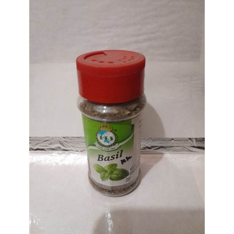 satu satu tiga daun basil kering untuk masak. bumbu instant yang praktis digunakan untuk masak