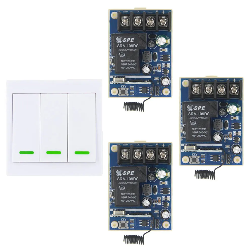 DC 12V 24V 36V 48V 30A Relay 1 CH 1CH RF Wireless Remote Control Light Motor Switch System,Receiver +3CH 86 Wall Transmitter